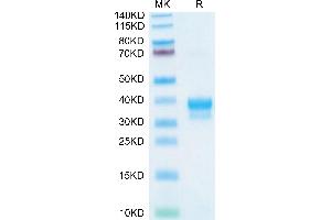 - 27.9 kDa. Due to glycosylation, the protein migrates to 35-40 kDa based on Tris-Bis PAGE result.