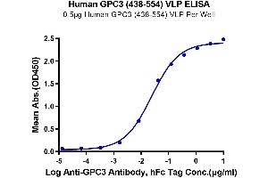 - Immobilized Human GPC3 (438-554) VLP at 5μg/ml (100μl/Well) on the plate. Dose response curve for Anti-GPC3 Antibody, hFc Tag with the EC50 of 24.1ng/ml determined by ELISA.