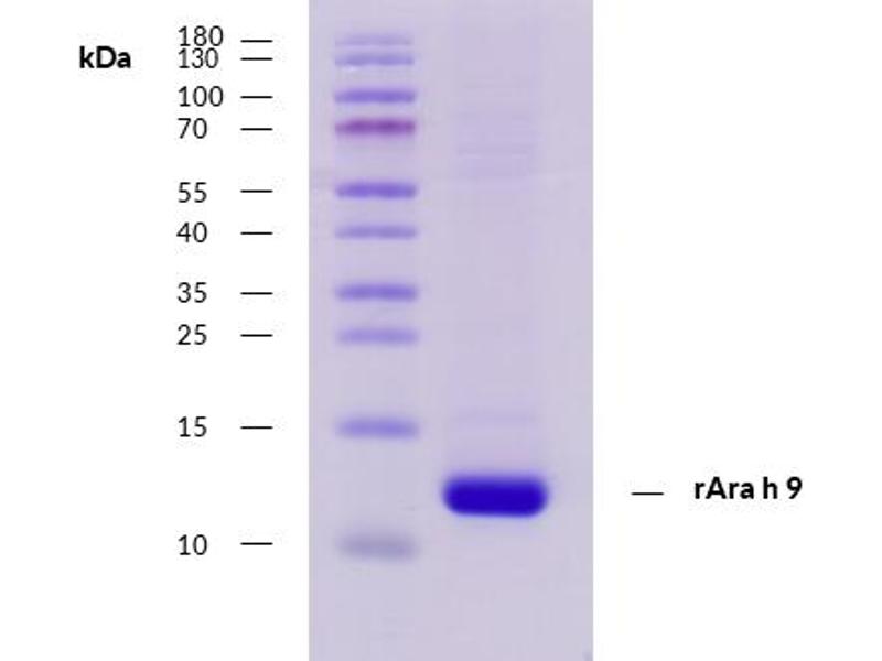 - Recombinant protein rAra h 9 is expressed in Escherichia coli. DNA sequence encoding 105 AAs was fused with Strep-tag at the N-terminus. A calculated molecular mass of recombinant protein is 10,6 kDa.