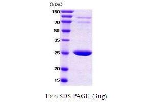 The 14-3-3 family plays a key regulatory role in signal transduction, checkpoint control, apoptotic and nutrient-sensing pathways. 14-3-3 proteins are highly conserved and ubiquitously expressed. There are at least seven isoforms, beta, gamma, epsilon,sigma, zeta, tau and eta that have been identified in mammals. The 14-3-3 beta, a subtype of the 14-3-3 proteins, was found in B Cells, brain and liver etc. This 14-3-3 beta has been shown to interact with RAF1 and CDC25 phosphatases, suggesting that it may play a role in linking mitogenic signaling and the cell cycle machinery. Recombinant human 14-3-3 beta was expressed in E. coli and purified by using conventional chromatography techniques.