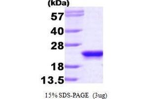 Phosphatidylethanolamine binding protein 1 (PEBP1), also known as Raf kinase inhibitor protein (RKIP), is a member of the phosphatidylethanolamine-binding protein family and a serine protease inhibitor which inhibits thrombin, neuropsin. PEBP1 plays a pivotal modulatory role in several protein kinase signaling cascades. Protein kinase C (PKC) phosphorylates PEBP1, resulting in release of Raf-1 and activation of MEK and ERK. Expressed in many tissues, PEBP1 is implicated in the regulation of such physiological processes as membrane biosynthesis, spermatogenesis, neural development, and metastasis suppression. Recombinant human PEBP1 was expressed in E. coli and purified by using conventional chromatography techniques.