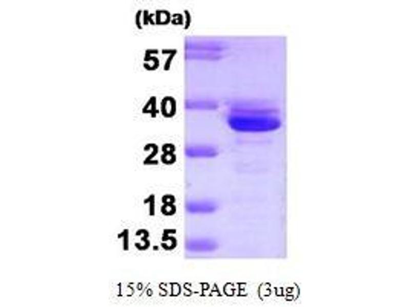 Annexin A3, also known as ANXA3, belong to the calcium dependent phospholipid binding protein family which play a role in the regulation of cellular growth and in signal transduction pathways. This protein functions in the inhibition of phospholipase A2 and cleavage of inositol 1, 2 cyclic phosphates to form inositol 1 phosphate. It has been reported for the signaling cascade in rat liver regeneration. Recombinant human ANXA3 was expressed in E. coli and purified by using conventional chromatography techniques.