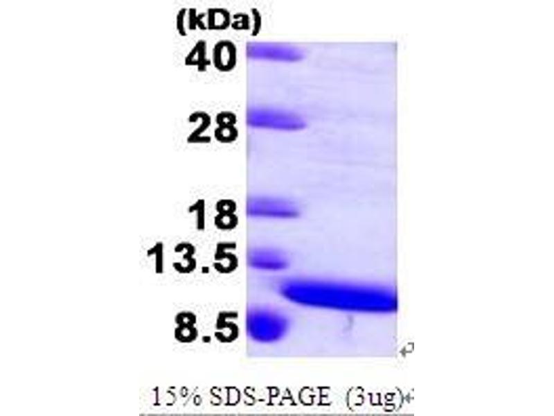 S100 calcium binding protein A8, also known as MRP8, is a member of the S100 family, EF-hand superfamily of Calcium binding proteins. S100A8 proteins are localized in the cytoplasm and/or nucleus of a wide range of cells, and involved in the regulation of a number of cellular processes such as cell cycle progression and differentiation. It functions both intracellularly and extracellularly, where it binds to RAGE and CD36. Altered expression of this protein is associated with the disease cystic fibrosis. Recombinant human S100A8 was expressed in E. coli and purified by using conventional chromatography techniques.