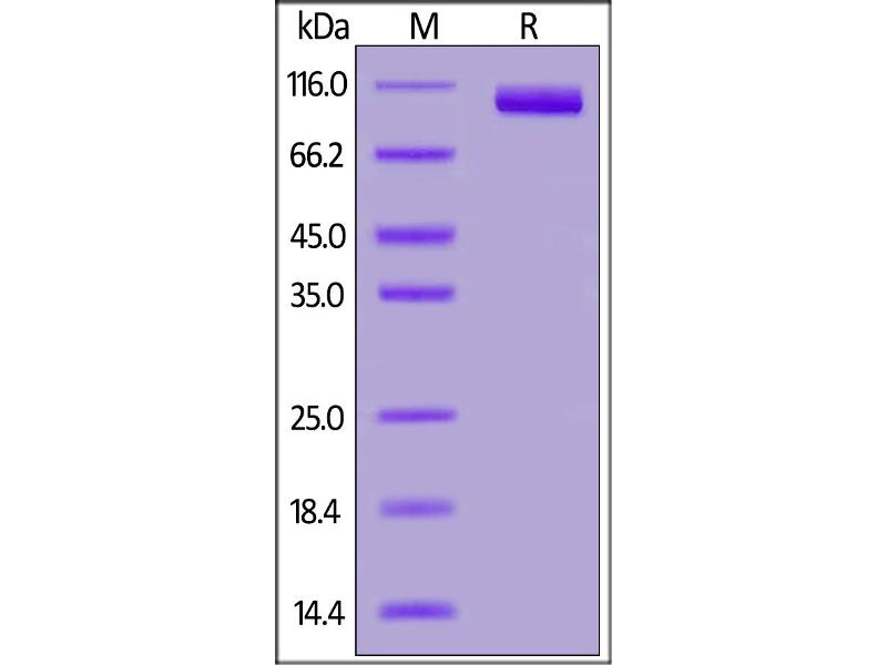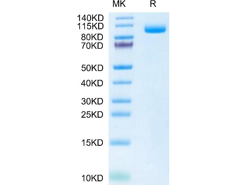 The purity of the protein is greater than 90 % as determined by SDS-PAGE and Coomassie blue staining.