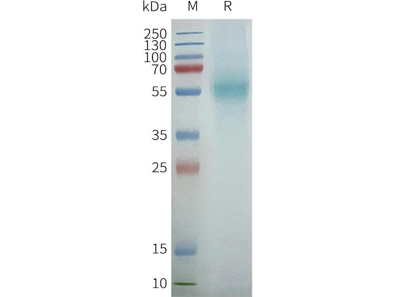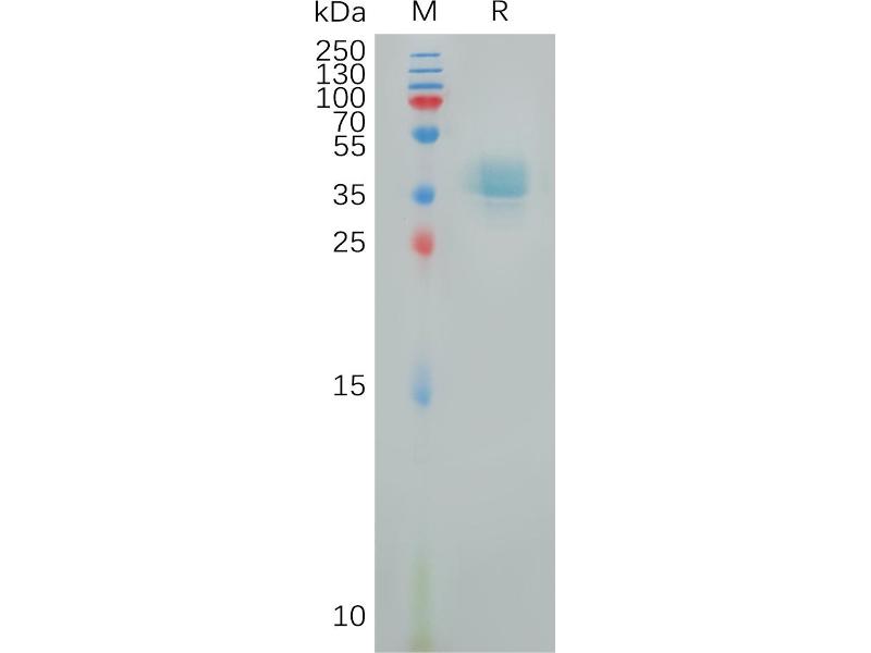 The purity of the protein is greater than 95 % as determined by SDS-PAGE and Coomassie blue staining.