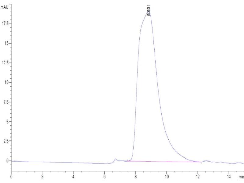 The purity of the protein is greater than 85 % as determined by SDS-PAGE and Coomassie blue staining.