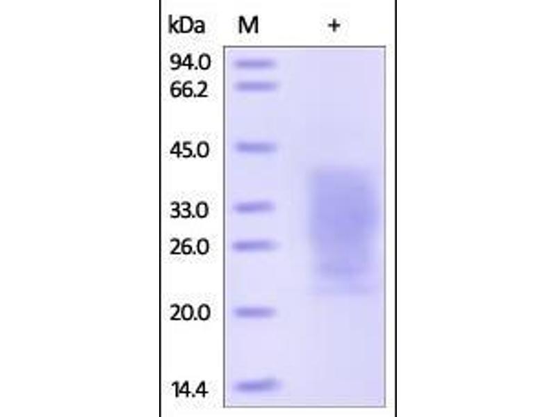 The purity of the protein is greater than 95 % as determined by SDS-PAGE and Coomassie blue staining.