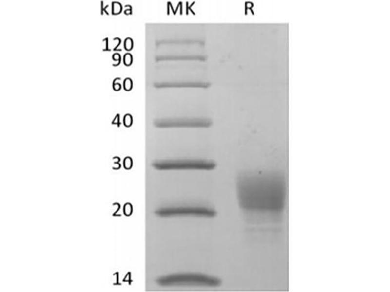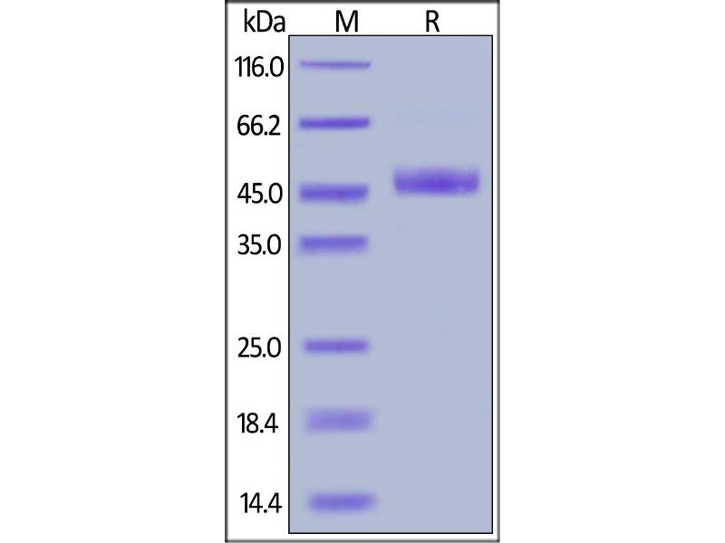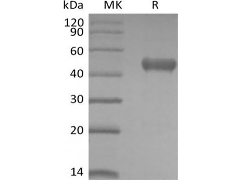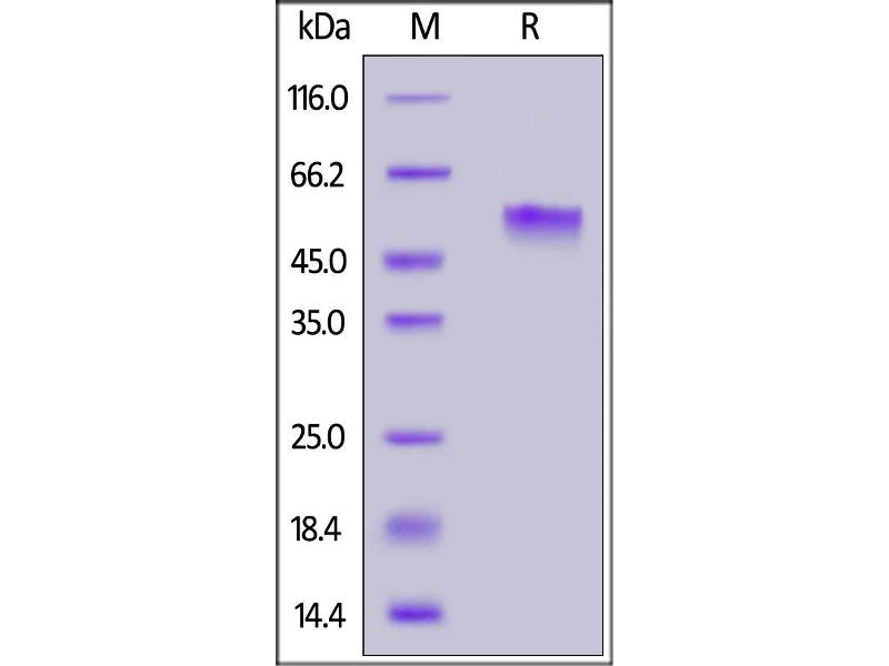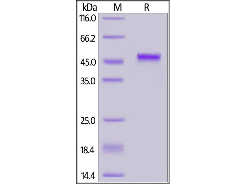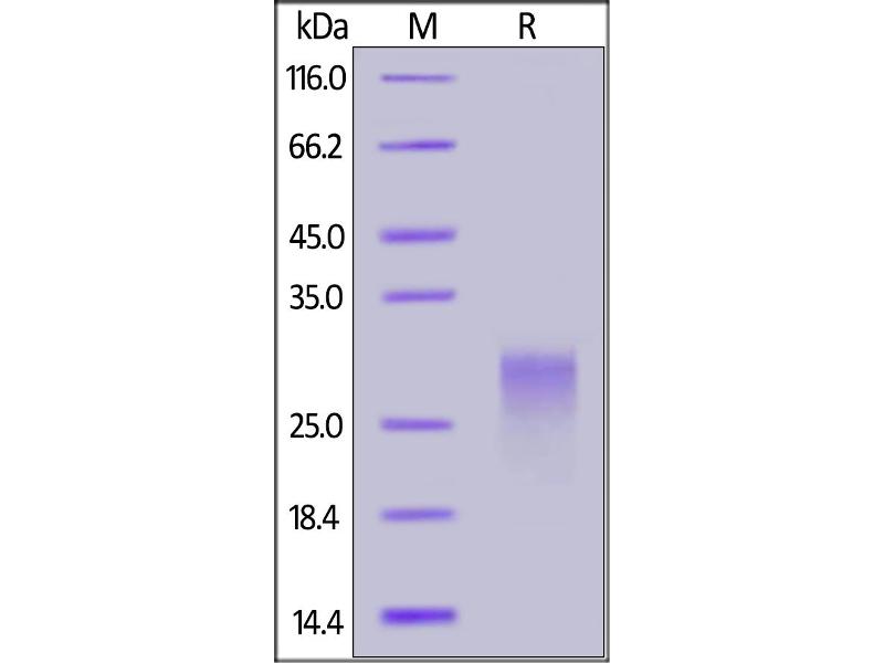 The purity of the protein is greater than 95 % as determined by SDS-PAGE and Coomassie blue staining.