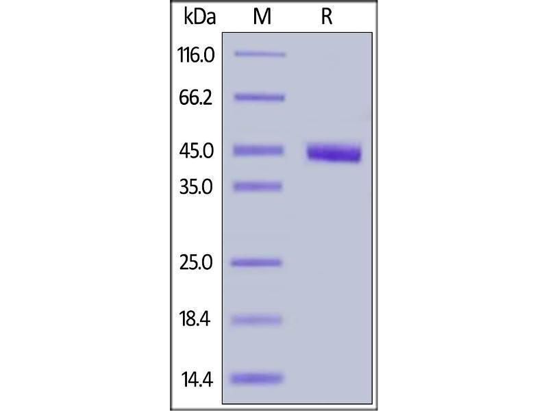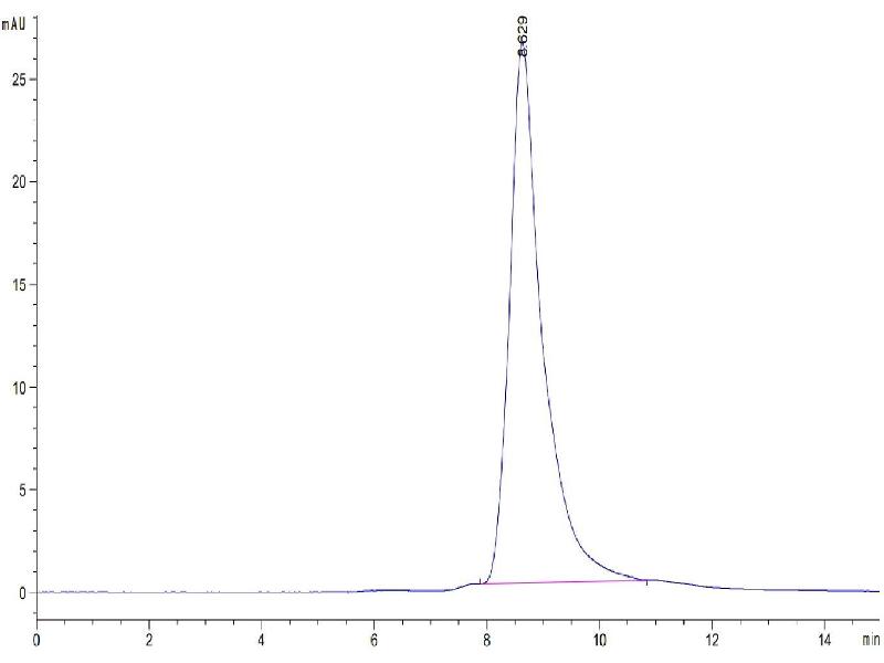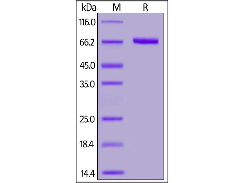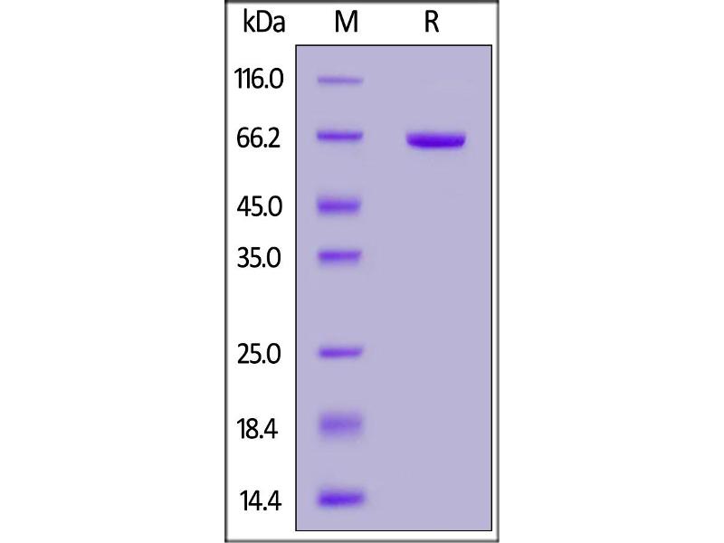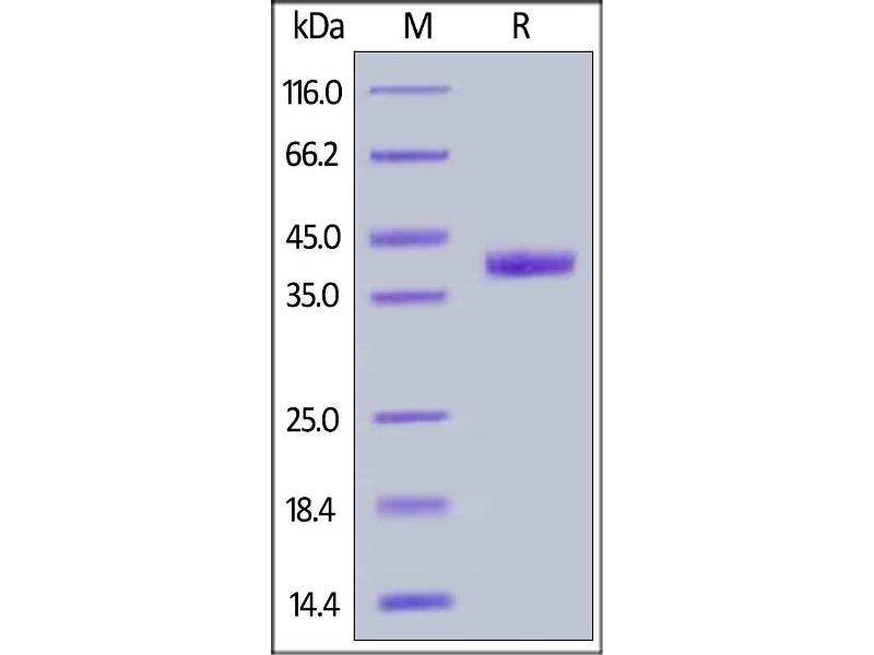 The purity of the protein is greater than 85 % as determined by SDS-PAGE and Coomassie blue staining.