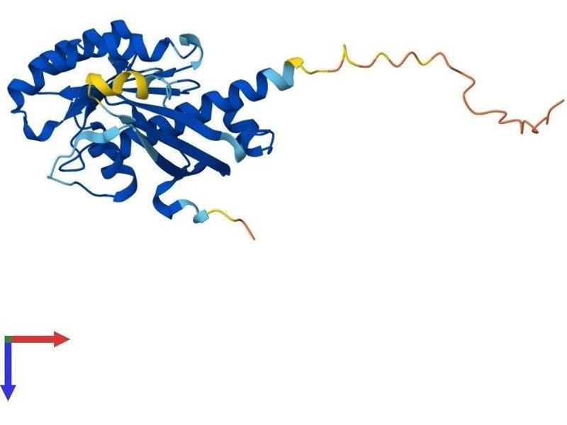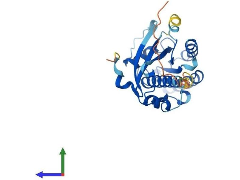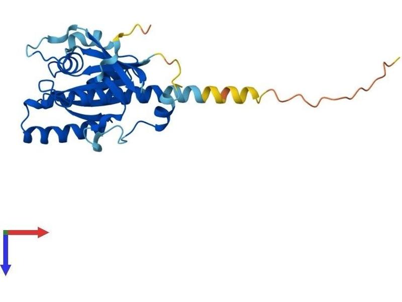 This gene encodes a protein belonging to the RAB family of proteins, which are small GTPases involved in protein transport. This family member is a Golgi-bound member of the secretory pathway that is involved in the repositioning of lysosomes and the activation of macropinocytosis. Alternative splicing of this gene results in multiple transcript variants. This gene overlaps and shares exon structure with the nine-amino acid residue-repeats (NARR) gene, which encodes a functionally distinct nucleolar protein from a different reading frame. [provided by RefSeq, Jan 2012].