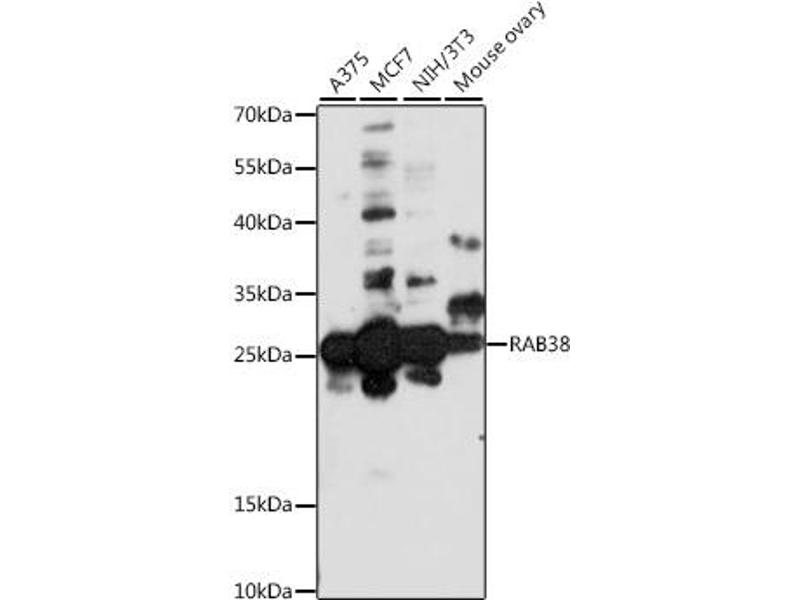 : "miRNA expression profiling in melanocytes and melanoma cell lines reveals miRNAs associated with formation and progression of malignant melanoma." dans: The Journal of investigative dermatology, Vol. 129, Issue 7, pp. 1740-51, (2009) (PubMed).Pseudonymes pour RAB38 Anticorps