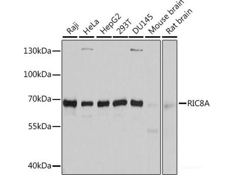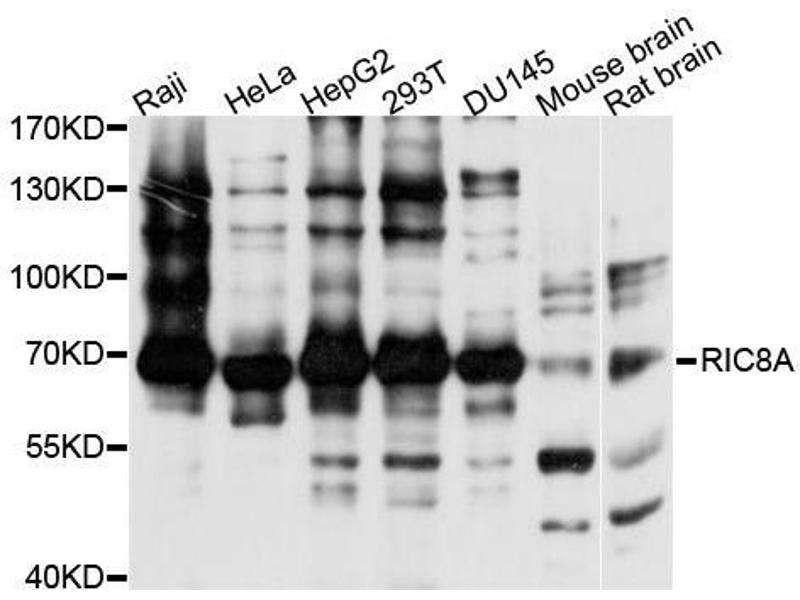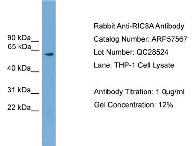 RIC8A Reactivité: Humain, Souris, Rat, Boeuf (Vache), Chien, Cobaye, Cheval, Lapin WB Hôte: Lapin Polyclonal unconjugated