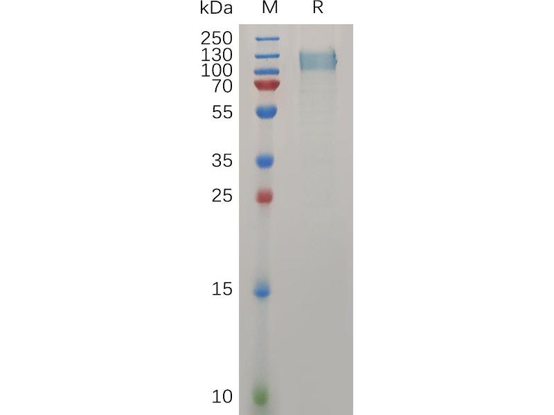 The purity of the protein is greater than 85 % as determined by SDS-PAGE and Coomassie blue staining.