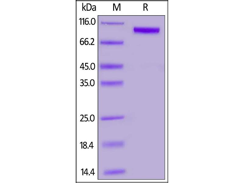 The purity of the protein is greater than 95 % as determined by SDS-PAGE and Coomassie blue staining.