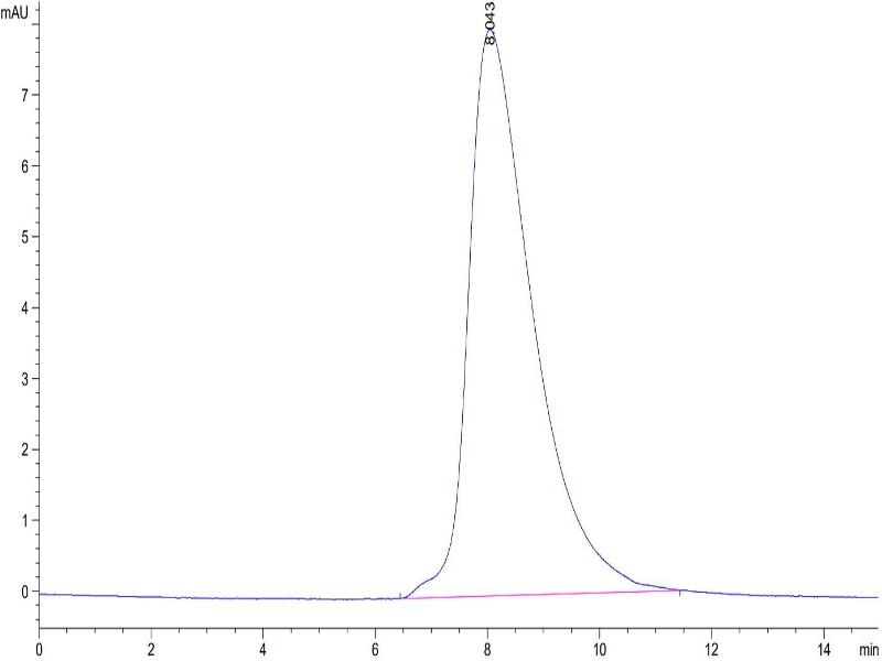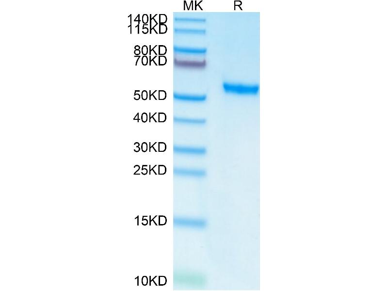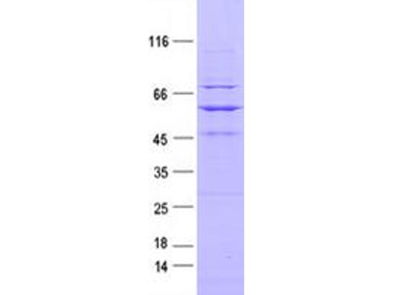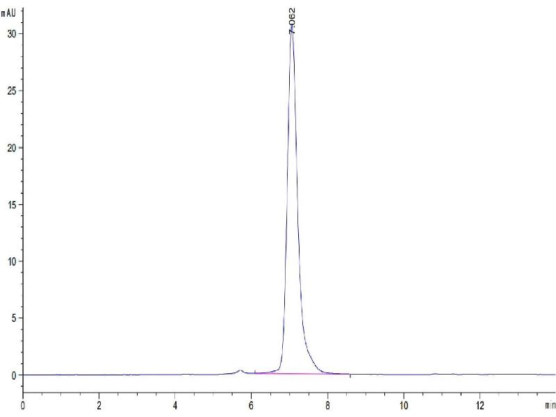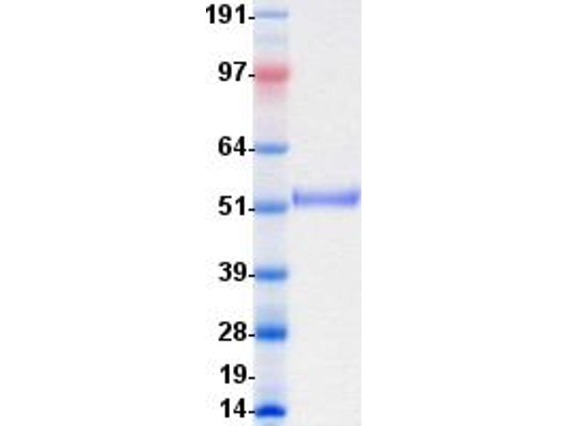 The purity of the protein is greater than 95 % as determined by SDS-PAGE and Coomassie blue staining.
