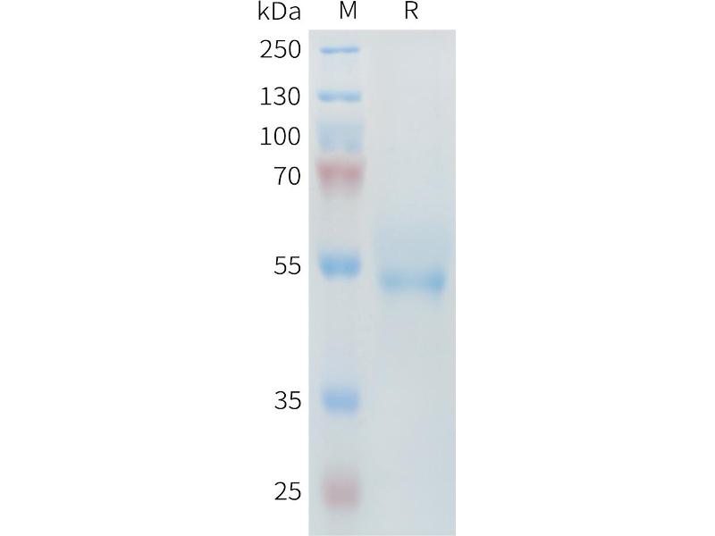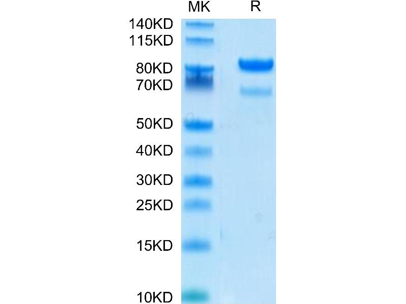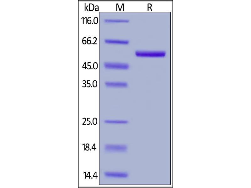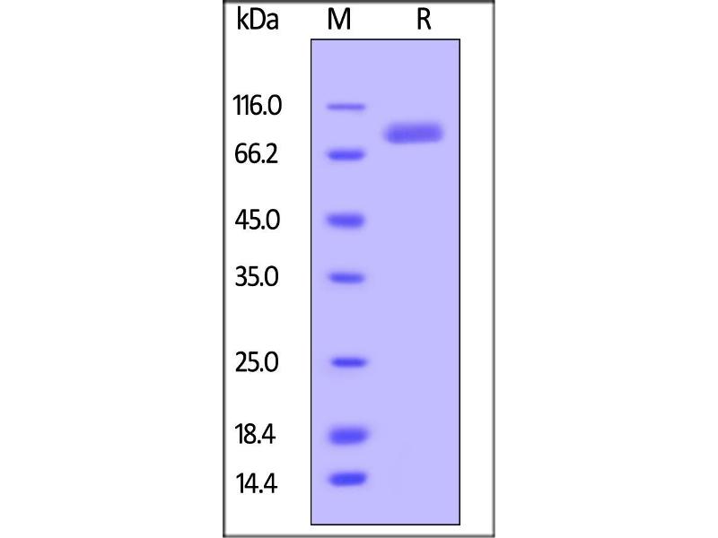 The purity of the protein is greater than 90 % as determined by SDS-PAGE and Coomassie blue staining.