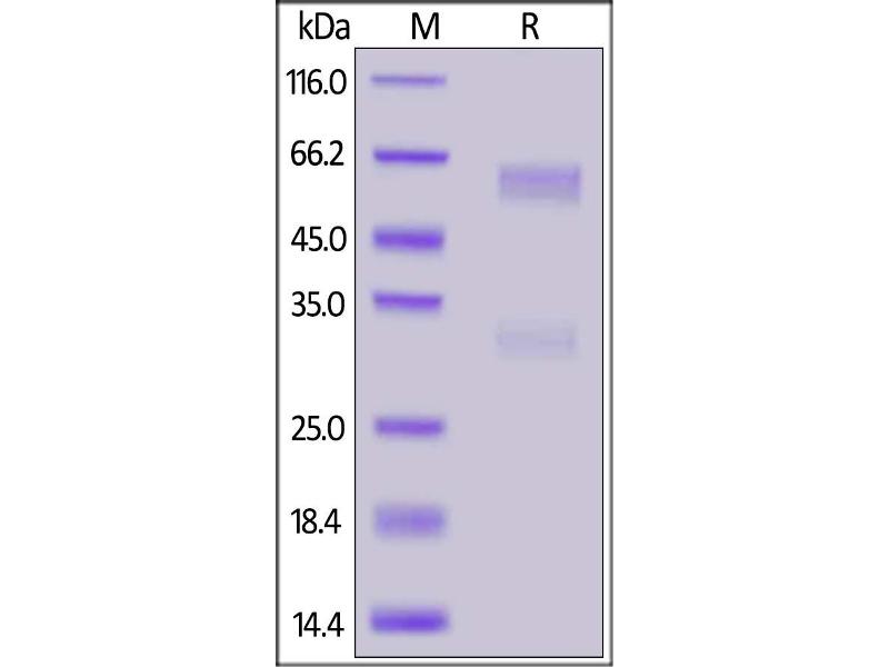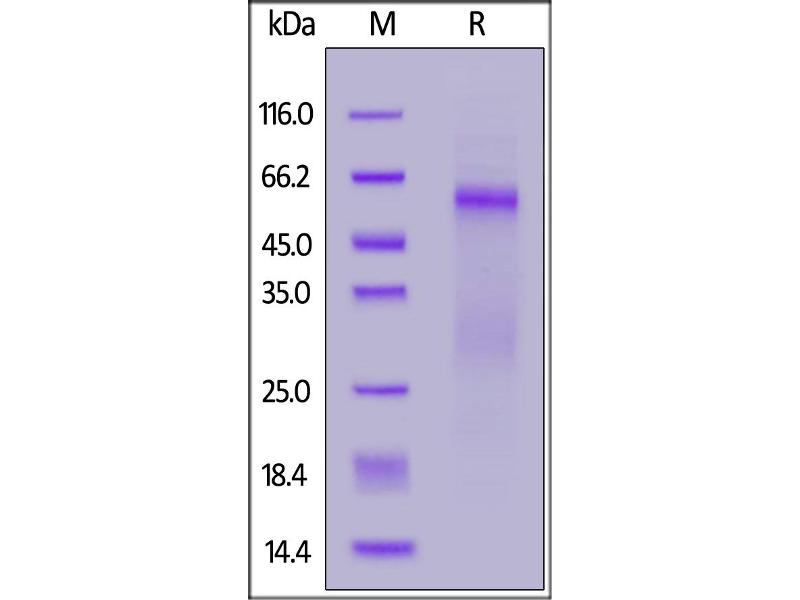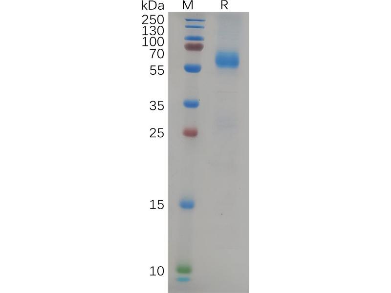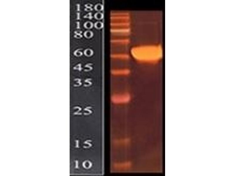 The purity of the protein is greater than 85 % as determined by SDS-PAGE and Coomassie blue staining.