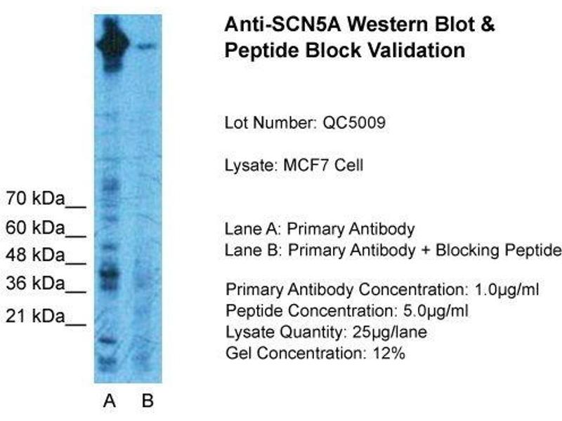 SCN5A Reactivité: Humain, Souris, Rat, Chien, Boeuf (Vache), Cobaye, Cheval, Poisson zèbre (Danio rerio), Lapin WB Hôte: Lapin Polyclonal unconjugated