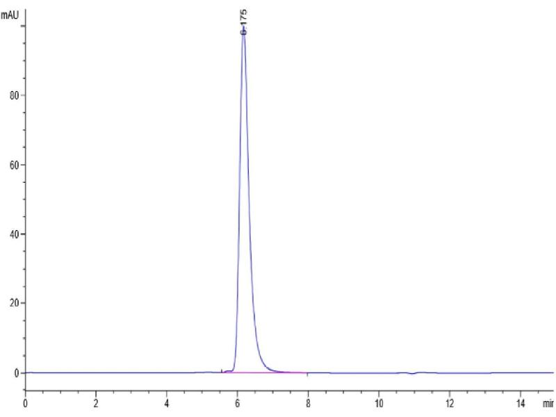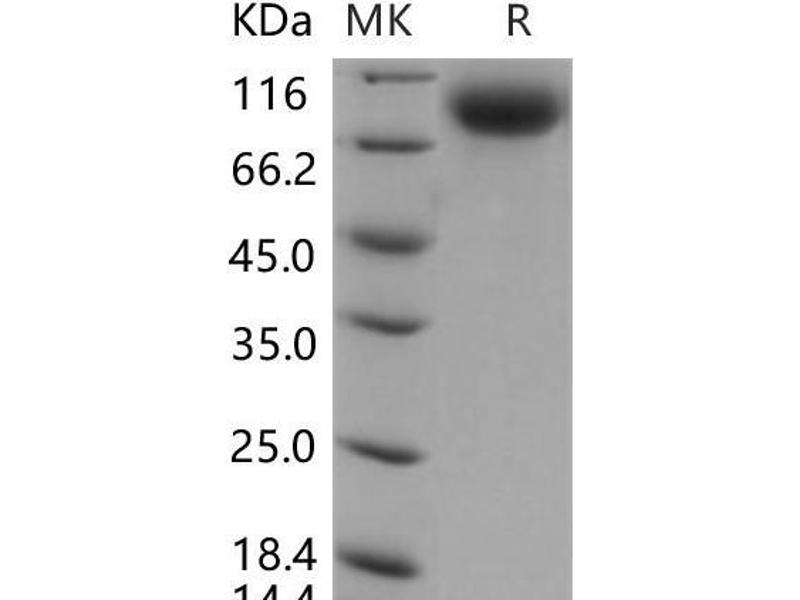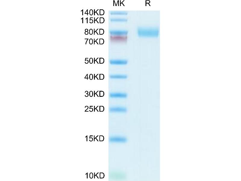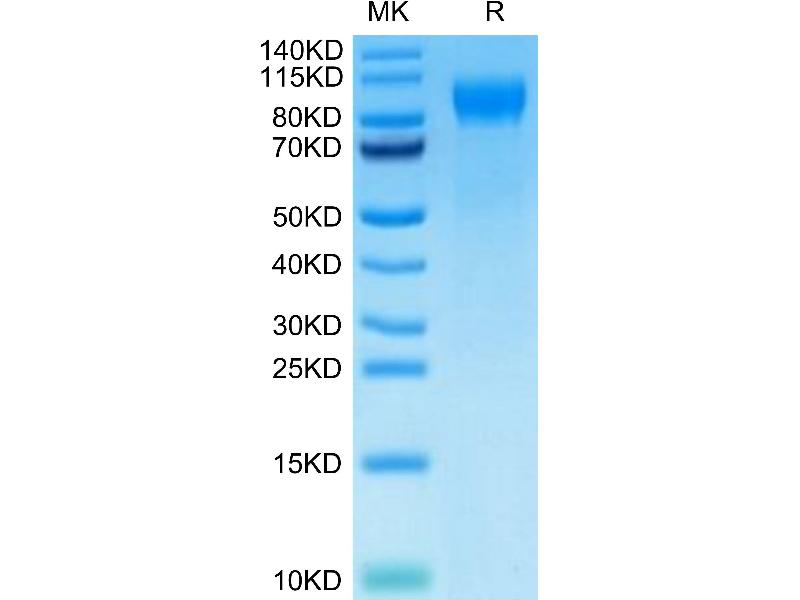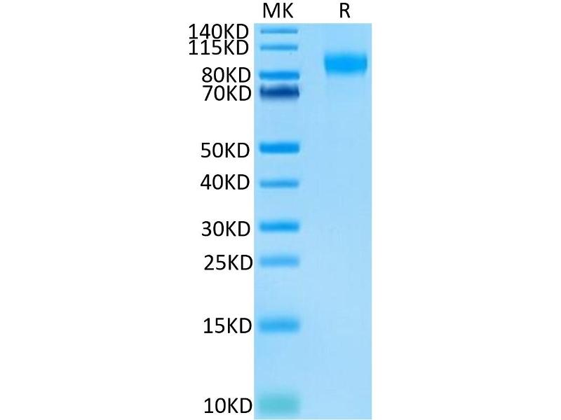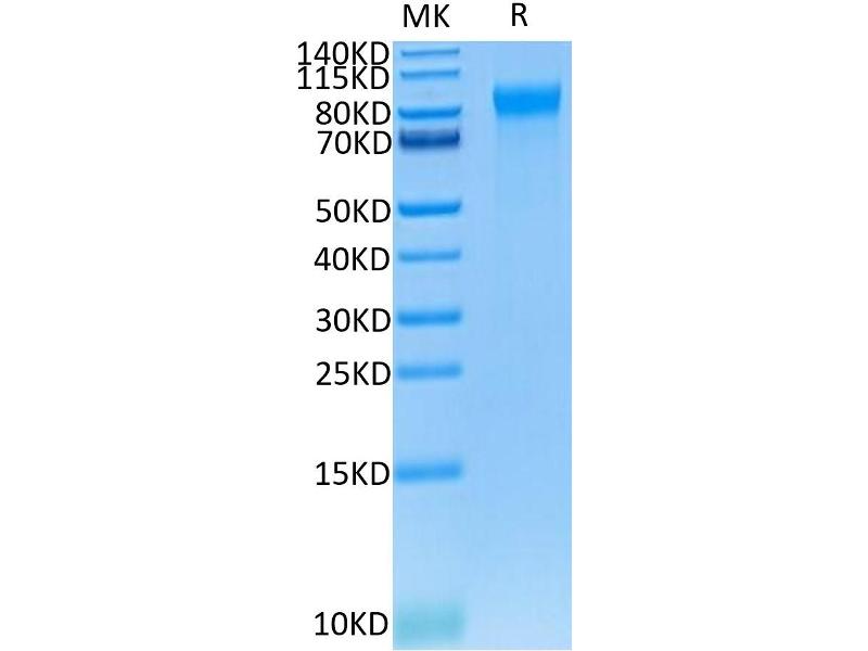 The purity of the protein is greater than 85 % as determined by SDS-PAGE and Coomassie blue staining.