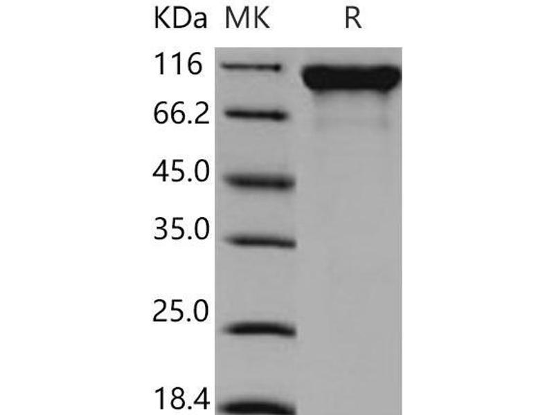 The purity of the protein is greater than 85 % as determined by SDS-PAGE and Coomassie blue staining.