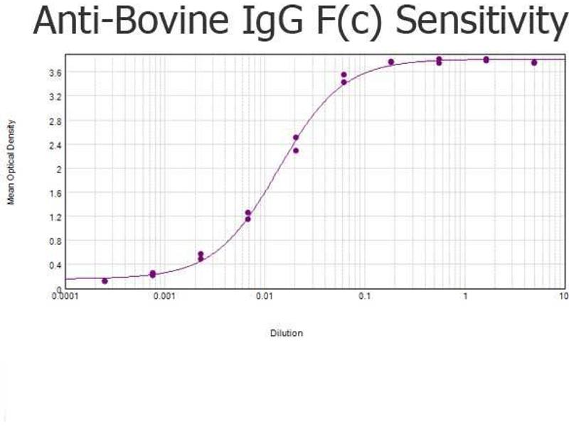 Immunogen: Anti-Bovine IgG F(c) was produced by repeated immunization with bovine IgG F(c) fragment in rabbit.