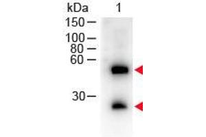 - Secreted as part of the adaptive immune response by plasma B cells, immunoglobulin G constitutes 75 % of serum immunoglobulins. Immunoglobulin G binds to viruses, bacteria, as well as fungi and facilitates their destruction or neutralization via agglutination (and thereby immobilizing them), activation of the compliment cascade, and opsonization for phagocytosis. The whole IgG molecule possesses both the F(c) region, recognized by high-affinity Fc receptor proteins, as well as the F(ab) region possessing the epitope-recognition site. Both the Heavy and Light chains of the antibody molecule are present. Secondary Antibodies are available in a variety of formats and conjugate types. When choosing a secondary antibody product, consideration must be given to species and immunoglobulin specificity, conjugate type, fragment and chain specificity, level of cross-reactivity, and host-species source and fragment composition. This Anti-Mouse peroxidase conjugated secondary antibody is ideal for investigators who routinely perform titration assays, western-blot, immunoprecipitation and more generally immunoassays.