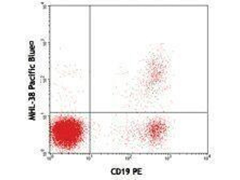 The MHL-38 antibody reacts with both soluble and membrane human immunoglobulin light chain lambda (λ). It does not react with human immunoglobulin light chain kappa (κ) or heavy chain (μ). The MHL-38 antibody can be used as primary or secondary reagent for immunofluorescent staining or ELISA analysis.