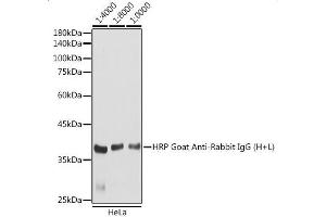 Secondary antibodies are affinity-purified antibodies which will work with target-specific primary antibody in the detection, sorting or purification of its specified target. Secondary antibodies offer increased versatility enabling users to use many detection systems (e.g. HRP, AP, fluorescence). They can also provide greater sensitivity through signal amplification as multiple secondary antibodies . Most commonly, secondary antibodies are generated by immunizing the host animal (different from host species of primary antibody) with a pooled population of normal immunoglobulins from the host species of primary antibody and can be further purified and modified (i.e. antibody fragmentation, label conjugation, etc.) to ensure well-characterized specificity to corresponding normal immunoglobulins.,Goat Anti-Rabbit