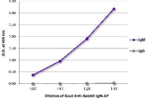Aperçu rapide pour Chèvre anti-Lapin IgM (Heavy Chain) Anticorps (Alkaline Phosphatase (AP)) (ABIN375698)
