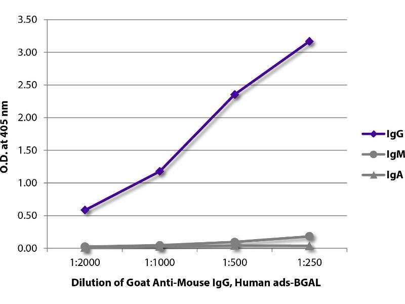 Reacts with mouse IgG 1, IgG 2a, IgG 2b and IgG 3 as demonstrated by ELISA and flow cytometry.