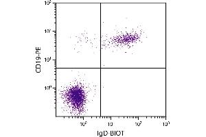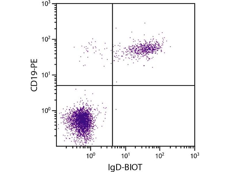 Reacts with the heavy chain of human IgD as demonstrated by ELISA and flow cytometry.