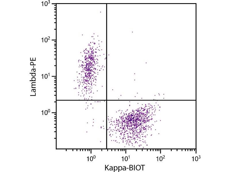 - Reacts with human λ light chains as demonstrated by ELISA and flow cytometry.
