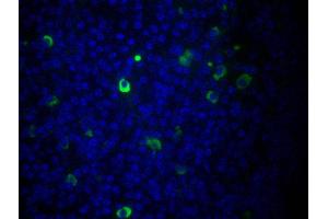 - Reacts with the heavy chain of mouse IgM