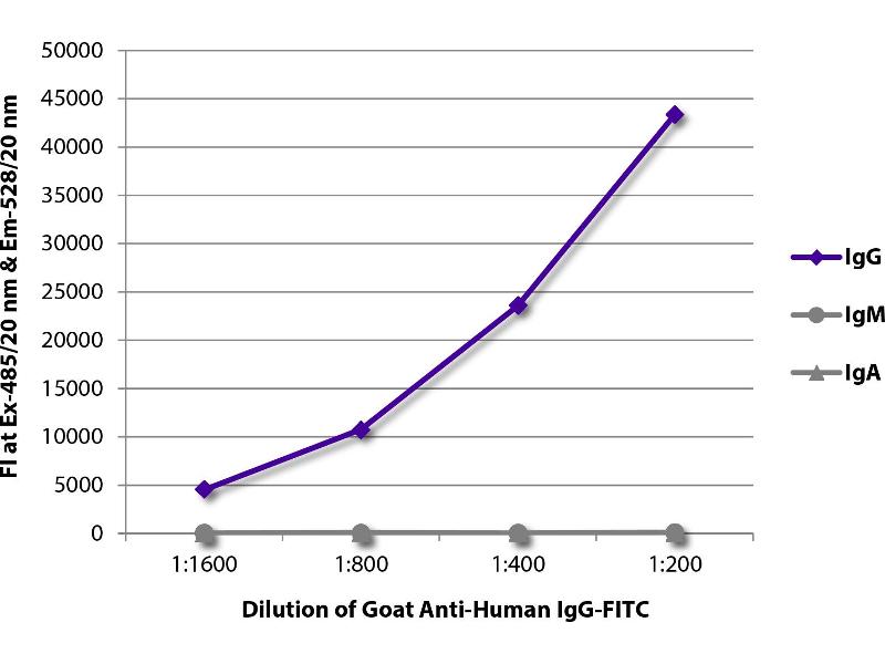 - Reacts with the heavy chain of human IgG as demonstrated by ELISA and flow cytometry.