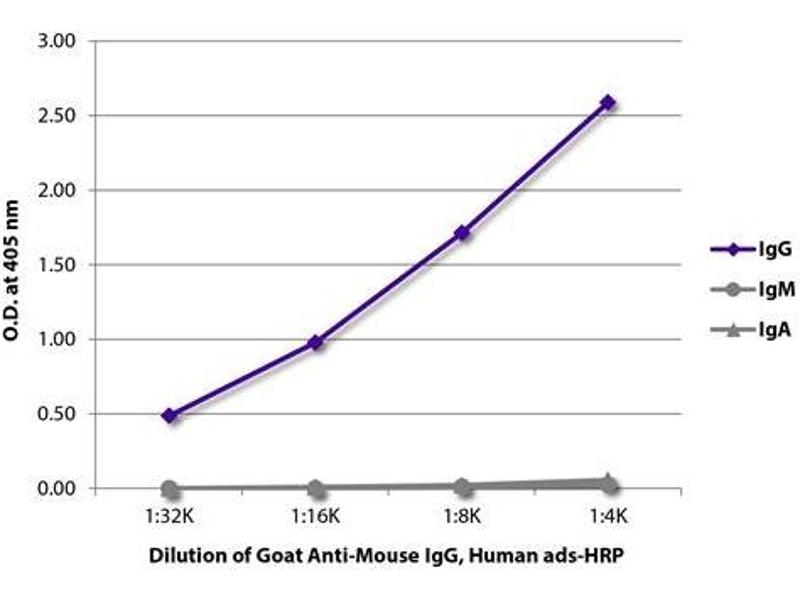 Reacts with mouse IgG 1, IgG 2a, IgG 2b and IgG 3 as demonstrated by ELISA and flow cytometry.