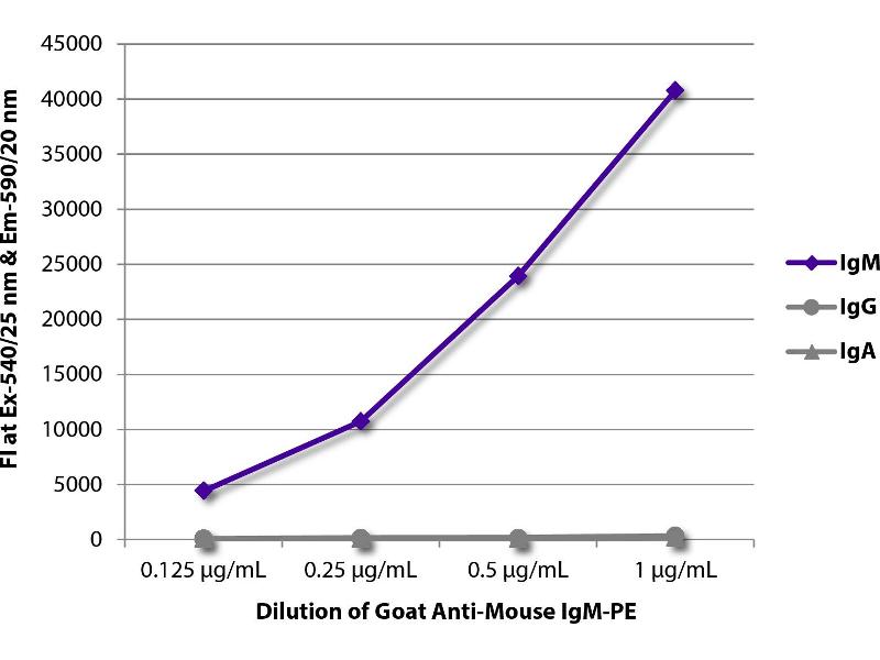 Working Dilutions: ELISA AP conjugate 1:2,000 - 1:4,000 HRP conjugate 1:4,000 - 1:8,000 BIOT conjugate 1:5,000 - 1:20,000 FLISA FITC, TRITC, TXRD, AF488, and AF555 conjugates 1:100 - 1:400 PE and AF647 conjugates 1 g/mL Flow Cytometry FITC, BIOT, and AF488 conjugates 1 g/106 cells PE and AF647 conjugates 0.1 g/106 cells For flow cytometry, the suggested use of these reagents is in a final volume of 100 L