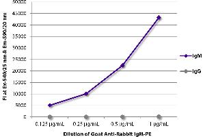 Source: Pooled antisera from goats hyperimmunized with normal rabbit IgM To insure lot-to-lot consistency, each batch of product is tested by ELISA, PCFIA and/or flow cytometry for conformance to characteristics of a standard reference reagent.