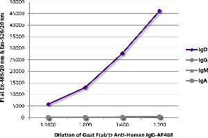 Working Dilutions: ELISA BIOT conjugate 1:5,000 - 1:20,000 FLISA FITC, AF488, and AF555 conjugates 1:100 - 1:400 PE and AF647 conjugates 1 g/mL Flow Cytometry FITC, BIOT, and AF488 conjugates 1 g/106 cells PE and AF647 conjugates 0.1 g/106 cells For flow cytometry, the suggested use of these reagents is in a final volume of 100 L