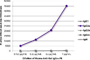 Working Dilutions: Flow Cytometry FITC, BIOT, and AF488 conjugates 1 g/106 cells PE, CY5, and AF647 conjugates 0.1 g/106 cells For flow cytometry, the suggested use of these reagents is in a final volume of 100 L ELISA AP conjugate 1:2,000 - 1:4,000 HRP conjugate 1:4,000 - 1:8,000 BIOT conjugate 1:5,000 - 1:10,000 FLISA FITC and AF488 conjugates 1:200 - 1:400 AF555 conjugate 1:100 - 1:400 PE, CY5, and AF647 conjugates 1 g/mL