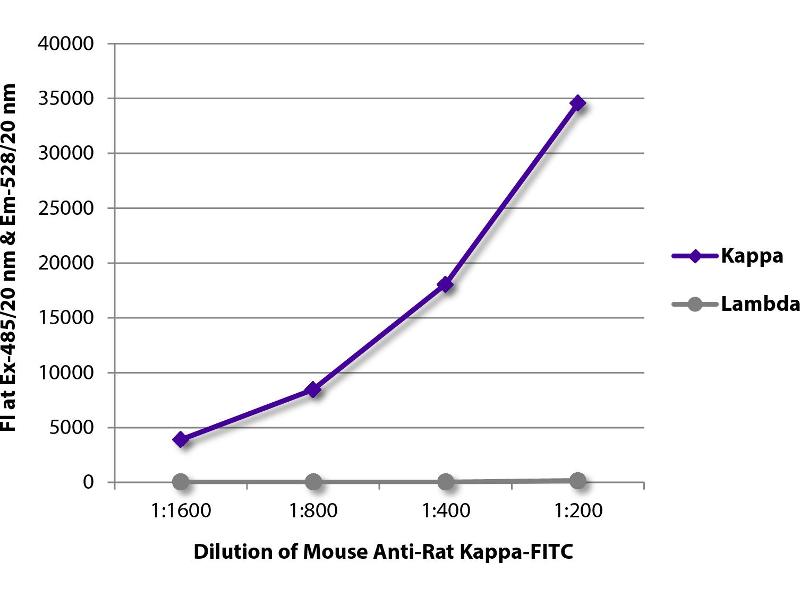 Working Dilutions: Flow Cytometry FITC and BIOT conjugates 1 g/106 cells PE conjugate 0.1 g/106 cells For flow cytometry, the suggested use of these reagents is in a final volume of 100 L ELISA AP conjugate 1:1,000 - 1:2,000 HRP conjugate 1:4,000 - 1:8,000 BIOT conjugate 1:5,000 - 1:10,000 FLISA FITC conjugate 1:200 - 1:400 PE conjugate 1 g/mL
