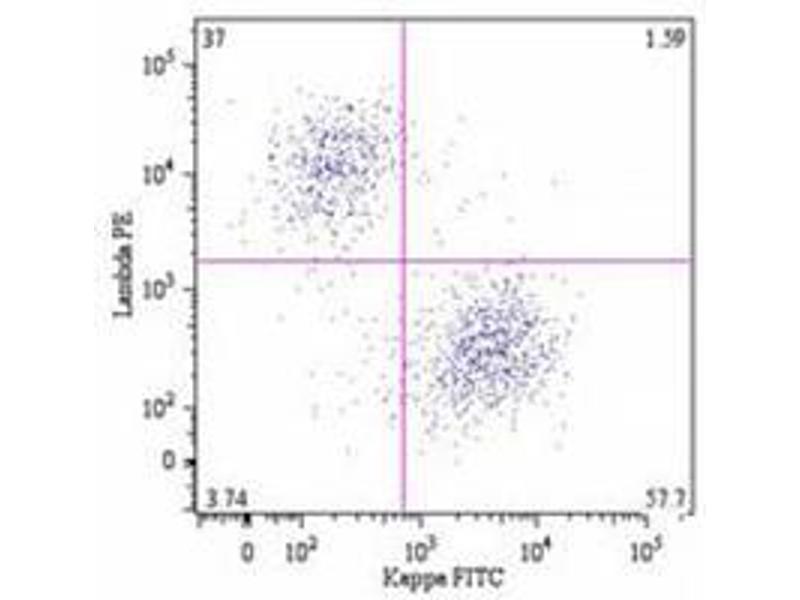 Flow cytometry analysis of human blood cells using 10 μL reagent / 100 μL of whole blood or10^6 cells in a suspension. The content of a vial (1 ml) is sufficient for 100 tests. Other applications not tested. Optimal dilutions are dependent on conditions and should be determined by the user.