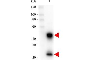 - HRP secondary antibody was prepared from monospecific antiserum by immunoaffinity chromatography using Mouse IgG coupled to agarose beads followed by solid phase adsorption(s) to remove any unwanted reactivities.