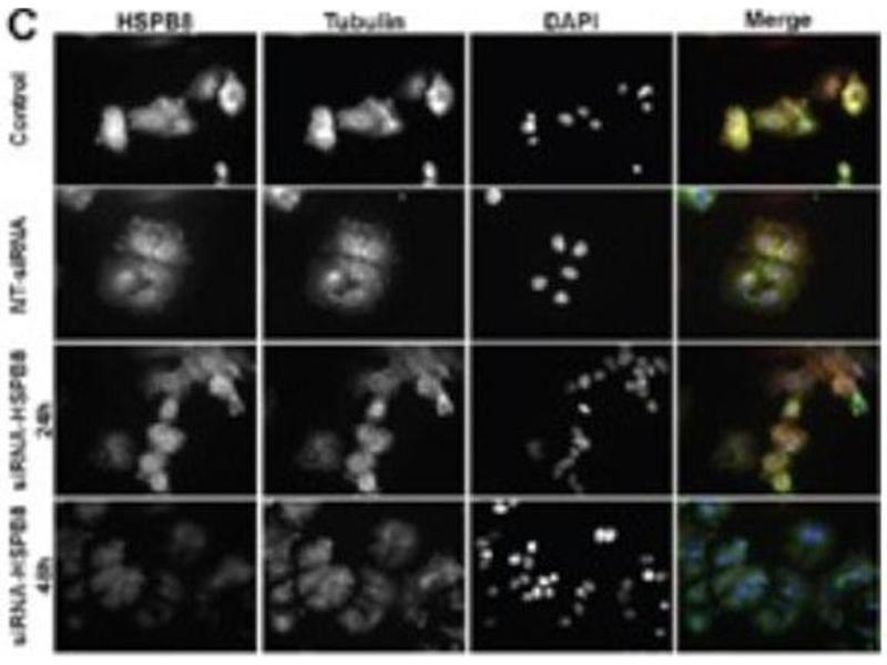 : "The small heat shock protein B8 (HSPB8) modulates proliferation and migration of breast cancer cells." dans: Oncotarget, Vol. 8, Issue 6, pp. 10400-10415, (2018) (PubMed).