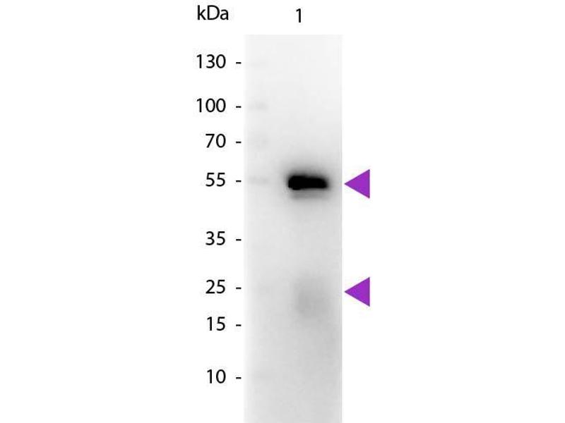 - Assay by immunoelectrophoresis resulted in a single precipitin arc against anti-Peroxidase and anti-Goat Serum. No reaction was observed against anti-Papain or anti-Goat IgG F(c).