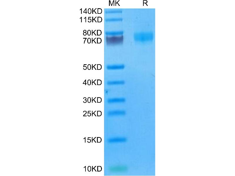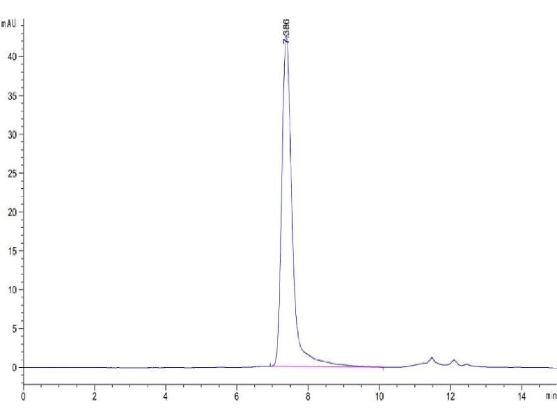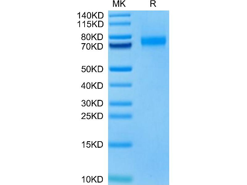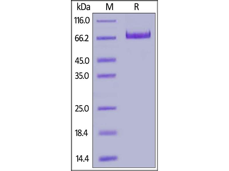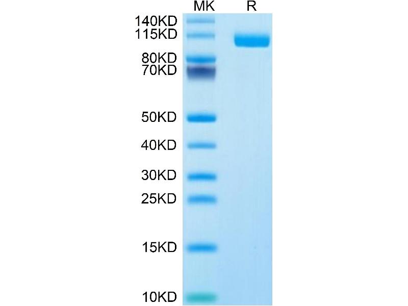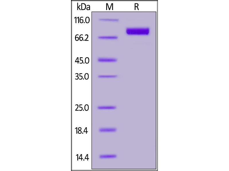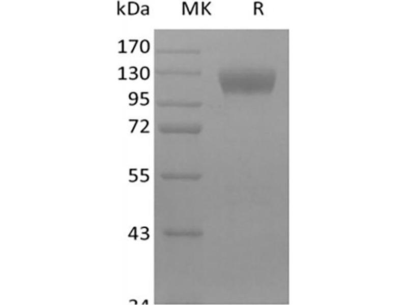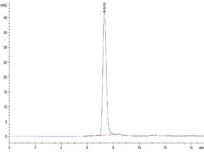 The purity of the protein is greater than 95 % as determined by SDS-PAGE and Coomassie blue staining.
