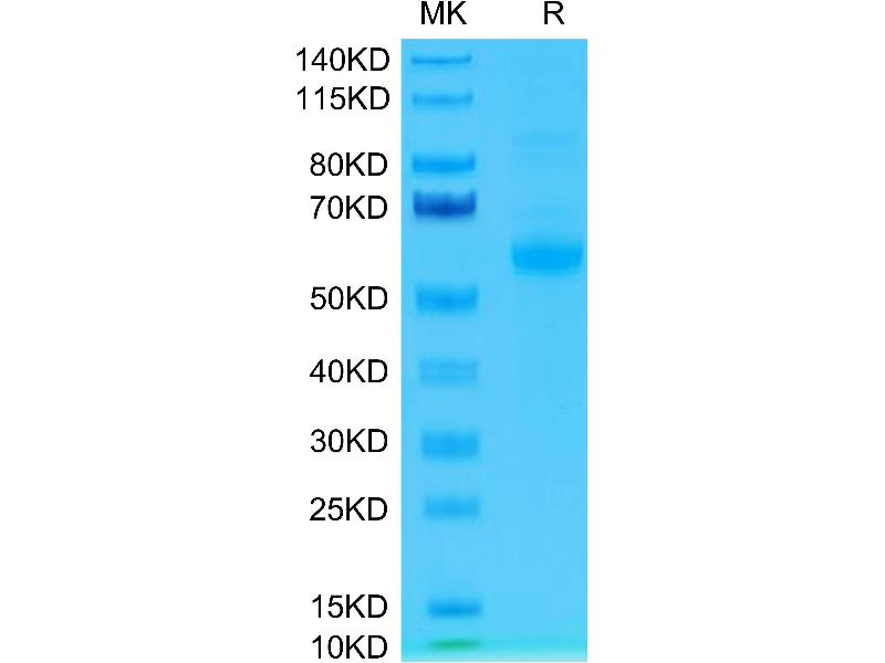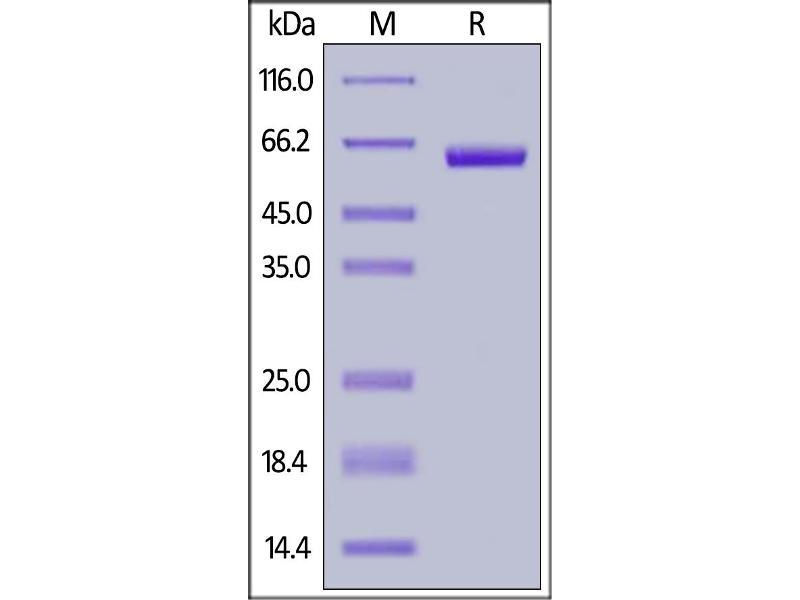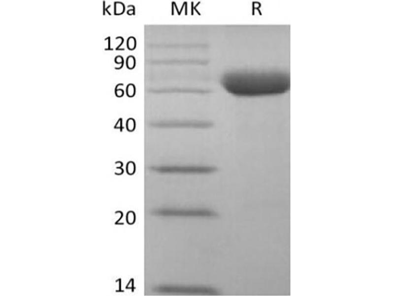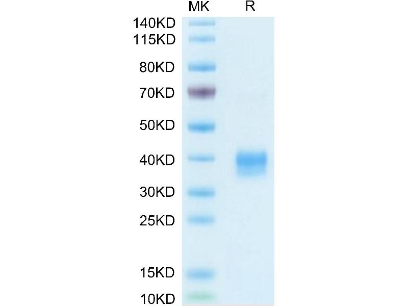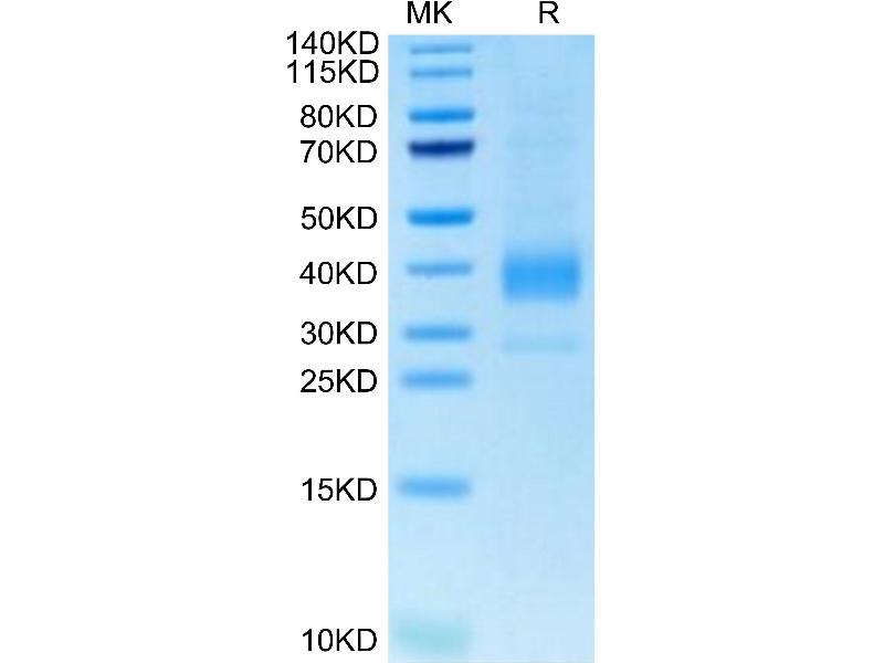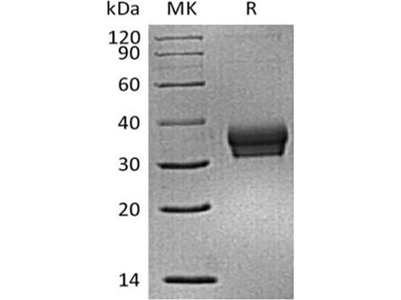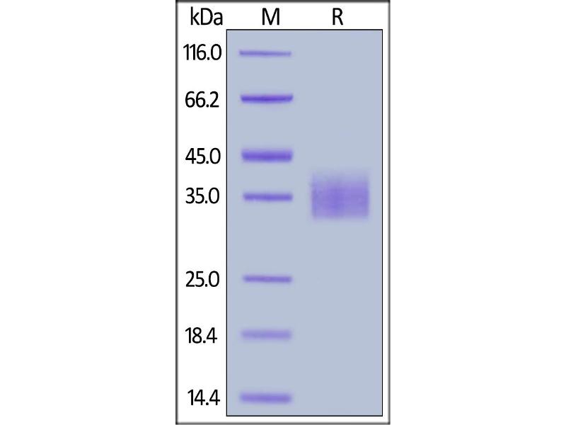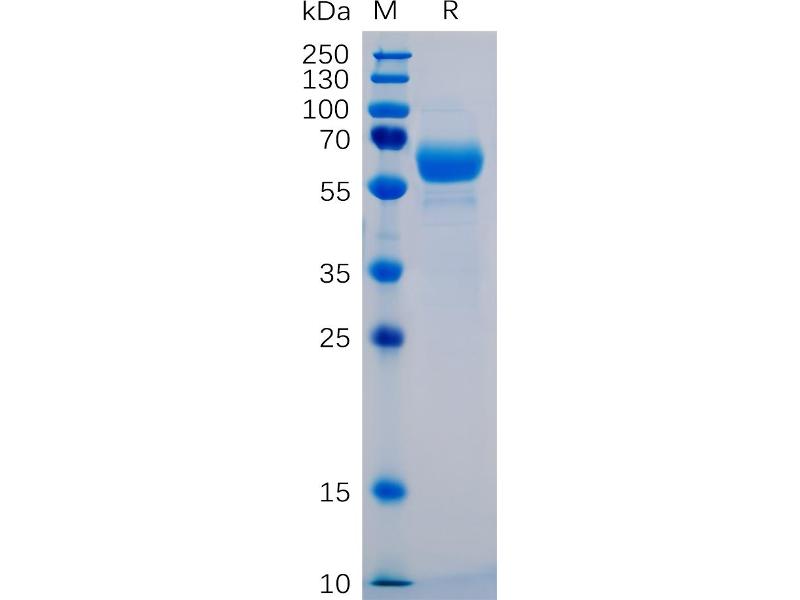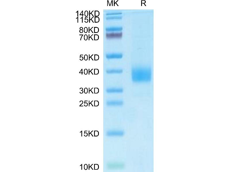 The purity of the protein is greater than 95 % as determined by SDS-PAGE and Coomassie blue staining.
