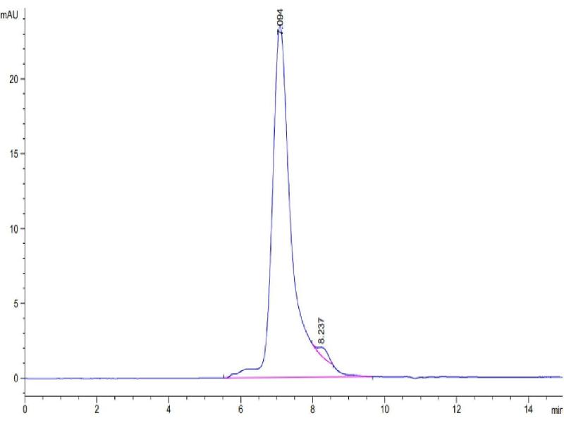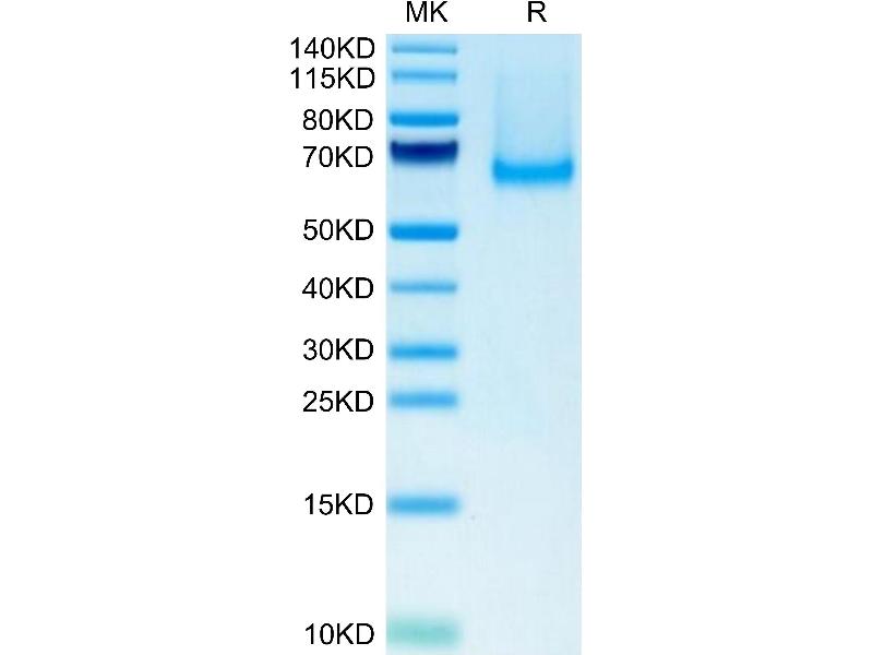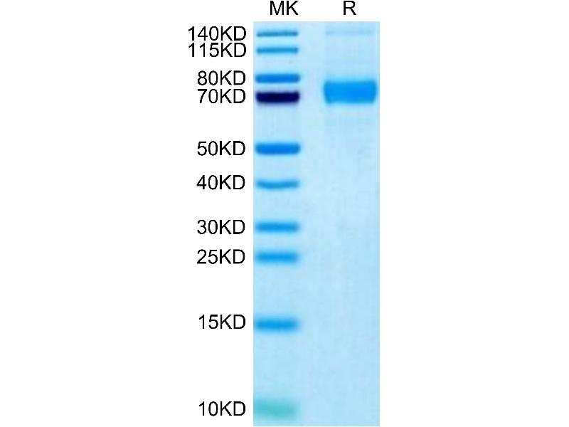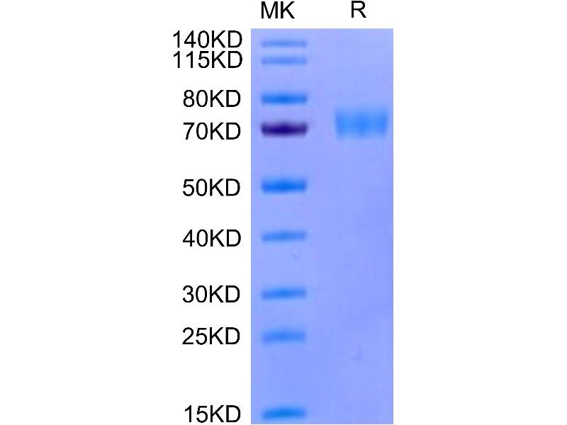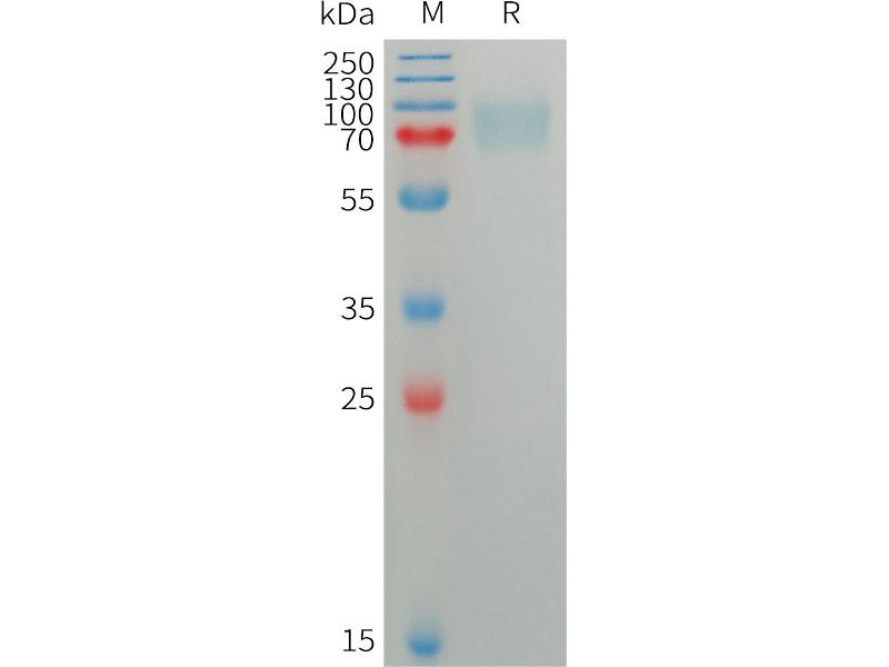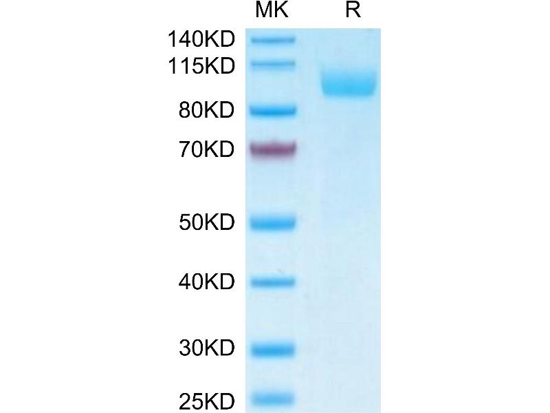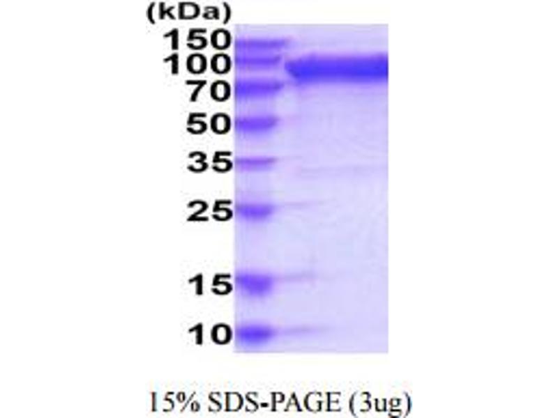The purity of the protein is greater than 85 % as determined by SDS-PAGE and Coomassie blue staining.