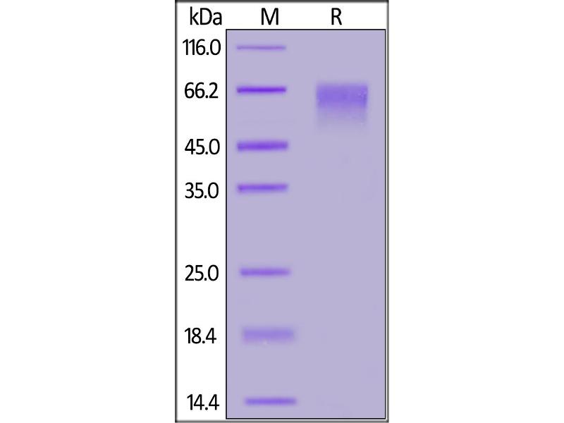 The purity of the protein is greater than 85 % as determined by SDS-PAGE and Coomassie blue staining.