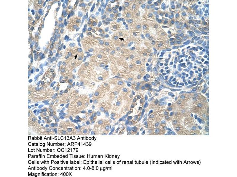 solute carrier family 13 (sodium-dependent dicarboxylate transporter), member 3 (slc13a3) Anticorpssolute carrier family 13 member 3 (SLC13A3) Anticorps