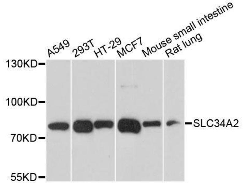 : "Phosphorus Restriction Changes the Expression of Fibroblast Growth Factor 23 and Its Receptors in Laying Hens." dans: Frontiers in physiology, Vol. 11, pp. 85, (2020) (PubMed).Pseudonymes pour SLC34A2 Anticorps